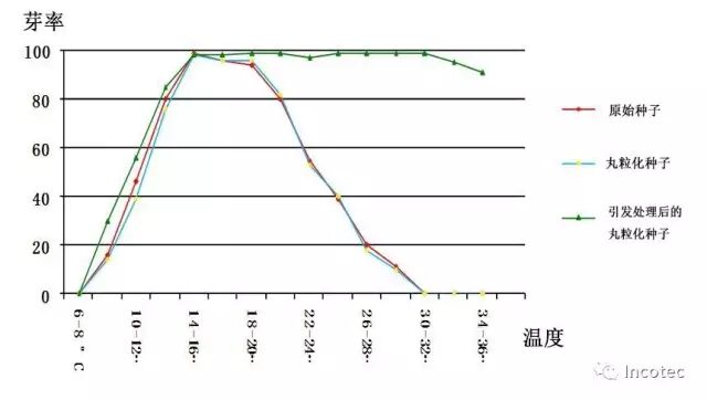 生菜種子由于高溫影響,種子會出現(xiàn)休眠狀態(tài)致使芽率降低,但引發(fā)技術(shù)可打破這種休眠,使種子在高溫下依然可以保證發(fā)芽率